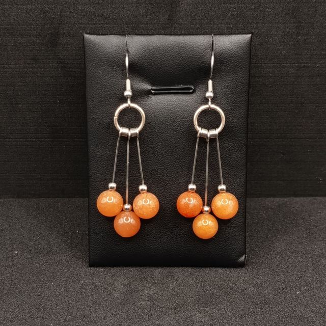 Boucles d’oreilles acier inox & aventurine orange – Design pendule bohème