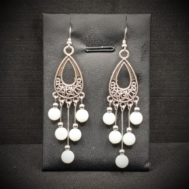 Élégantes et légères, ces boucles d’oreilles bohème apportent une touche de douceur et de caractère à votre style. Leur motif ajouré en forme de goutte, travaillé façon filigrane, crée un charme délicat et féminin. Les petites perles en amazonite sont suspendues en cascade pour un mouvement fluide, lumineux et harmonieux.